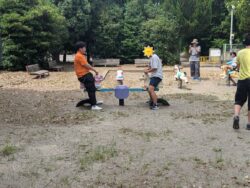 スタッフを誘ってシーソーで遊んでみたり、