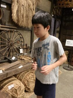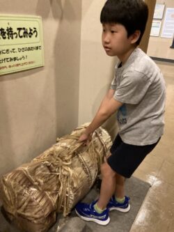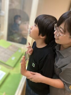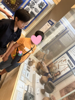 中に入ると土器や昔の道具の展示に、みんな興味津々なお顔です…😮