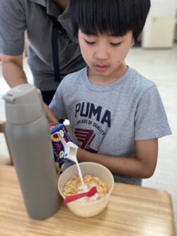最後は、牛乳をそそぎます🎵入れ過ぎないように💦気をつけてつくることができました💓