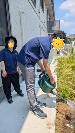 昨日植えた野菜の苗に今日もしっかりと水やり🌱