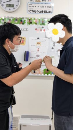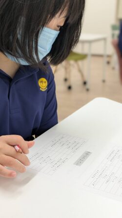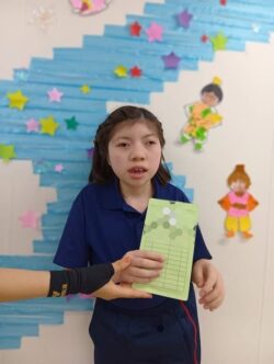 まずは毎月恒例、プリントに今月頑張った事と自分の名前、来月頑張りたいことを記入します✍