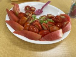 その後のおやつの時間では、りっとで採れたトマトとオクラを頂きました!