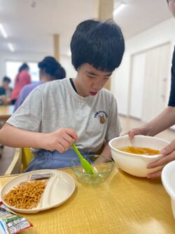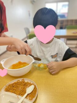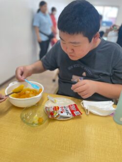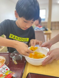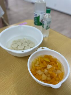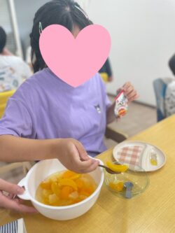 フルーツは、好きな量をスプーンですくい、カップに入れていくよ(^^)/