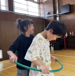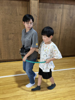 それでも遊びは湧いて出てきます!フラフープで汽車ごっこ!