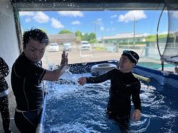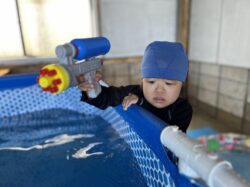 大きいプールが気になって水鉄砲を発射ーーー🫧