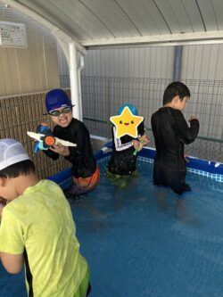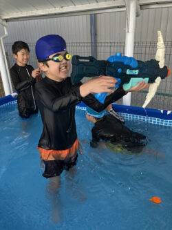 スタッフに水鉄砲で水をかけて遊んでると😏