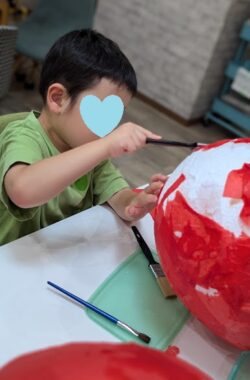 張り子の要領で、紙を丁寧に一枚一枚張り付けています
