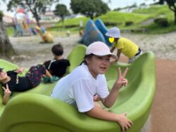 サッカーやバトミントンをしたり、ターザンごっこをして