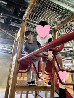 外が暑いので、室内の大きい遊具で思いっきり遊びましょう☝