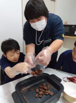 午後は後半組が図書館へ、お誕生日手作りオヤツ班・自立活動トレーニング班に分かれて再び作業開始です👍