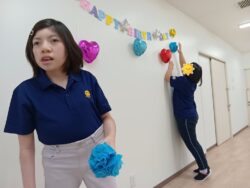 午前は図書館班・植栽班・お誕生日飾りつけ班・お誕生日手作りオヤツ班とに分かれて活動。