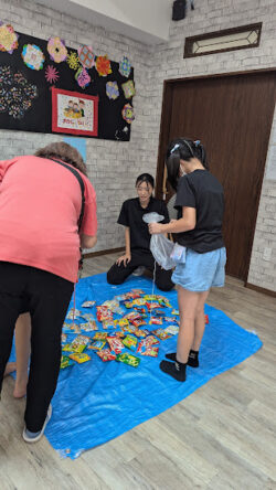 まずは、夏祭りの準備をスタッフと一緒に行いました😊