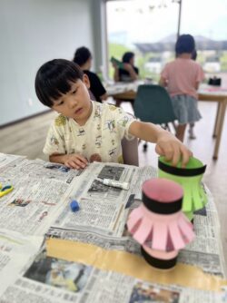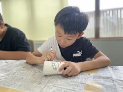 ポスター作りや提灯作り、射的の的作りに取り組みました。