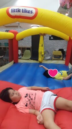 多少の疲れはあるものの、どのお友達もニコニコの笑顔でバウンサーを跳んでいました。