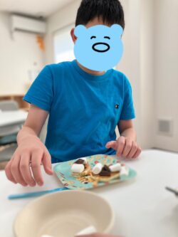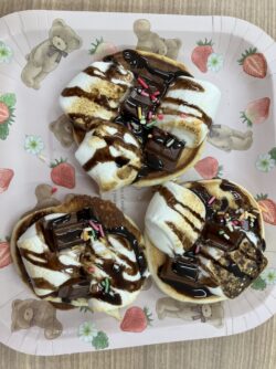 チョコレートやマシュマロ、バナナにホイップクリームなどを自由にトッピングしていきます💞