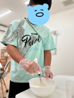まずは、材料を入れて生地を混ぜてみましょう🌀