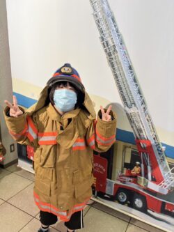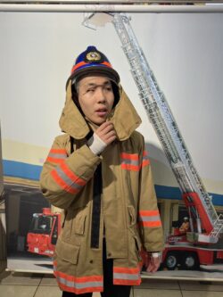 記念撮影では、皆さん消防署員のユニフォーム着用でハイポーズ、決まってますね!
