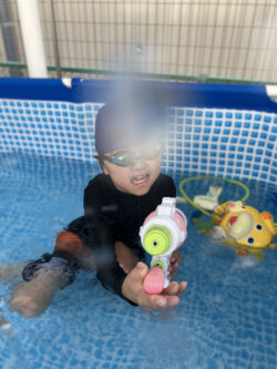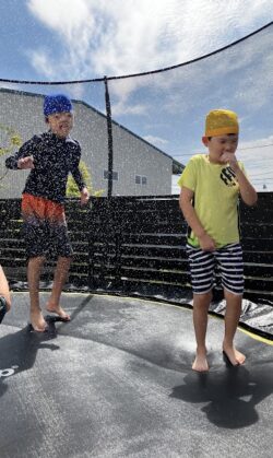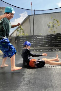 今日は2グループに分かれて、プールとトランポリンで遊びました!