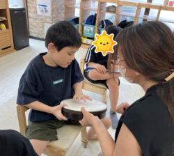 曲のリズムに合わせて振ったり叩いたりとそれぞれ楽器を鳴らします。もちろん自分なりのリズムでも◎☺