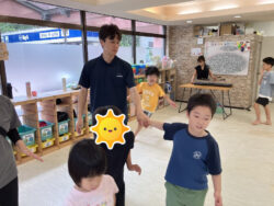 そしてみんなで一緒にリトミック!音楽の曲調と先生の掛け声に合わせて走ったり歩いたり、もしくは忍び足…😎