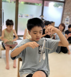 朝が来た!と先生が合図を鳴らせば楽器の時間!皆それぞれ好きな楽器を手に取り、