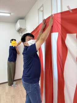 納涼祭のお部屋の装飾を協力しながら行います👍