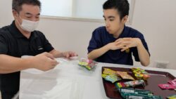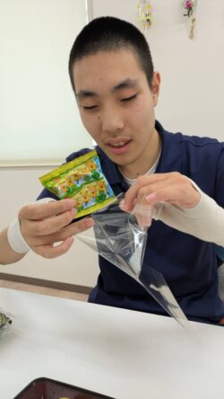 スタッフと一緒にお菓子の袋詰めにも挑戦!!!