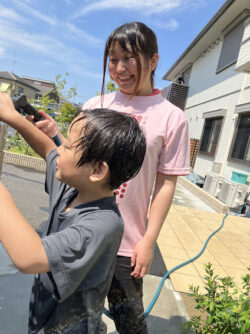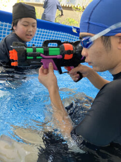 水鉄砲や浮き輪を使い、楽しんでいました😊