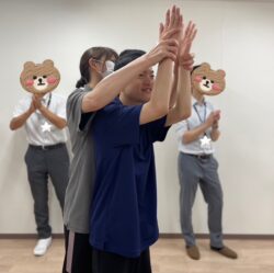 ノリノリの音楽に合わせて皆で輪になって全身運動。皆でやると楽しさ倍増!