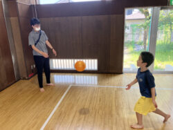 スタッフとボール投げをするお友達、