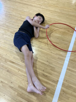 フラフープで遊ぶお友達、