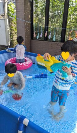水鉄砲で水を掛け合ったり💦