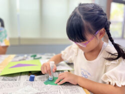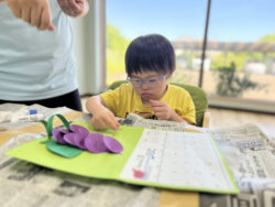 のりを使って「ペタペタ」と言いながら作っていました😆
