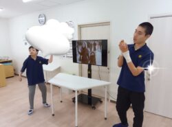 午前中はエアロビや筋トレを行いました。