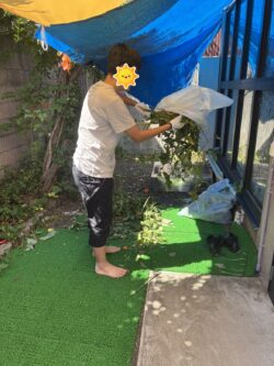 旺盛に成長したお庭の花壇に生えた雑草を抜いて草刈りを行いました🤗