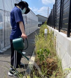 本日午前は植栽。エアロビを行いながら交代でトマトなどにお水をやります。