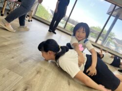 二人組になって、⑤フライパン返し🍳 ⑥腕立て姿勢からの~タッチ、