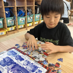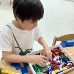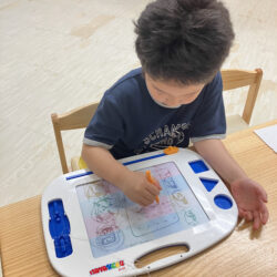 お絵描きボード、ジグソーパズルやレゴブロックに全集中するお子様たち、
