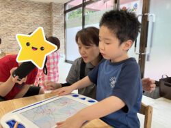 このお子様も、お絵描きボードを貸してもらいたい気持ちでいるところを、スタッフの促しで「貸してください」ときちんと言えることができました。