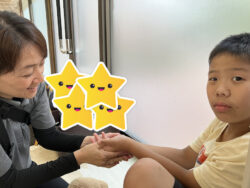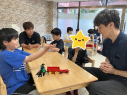 “貸して”がすぐには出てこないお子様も、スタッフに促されたり一緒に取り組んだりすると、“あ、いつものか”と気付いたようにハンドサインしてくれるお子様や、見よう見まねで抵抗なく取り組んでくれるお子様ばかり。