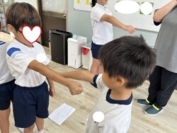 最後は、お友達と話す時などの距離感は腕一本分を学び、みんなで練習しました👍