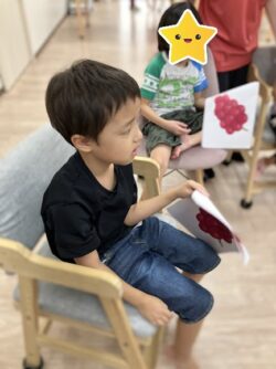 他にもブドウやカラフルな紙を持っている子もいます!!