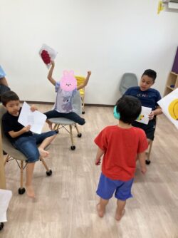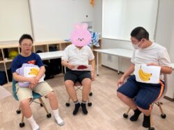 「バナナを持っている人~✋」とお題があり、みんなで確認しています👀