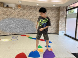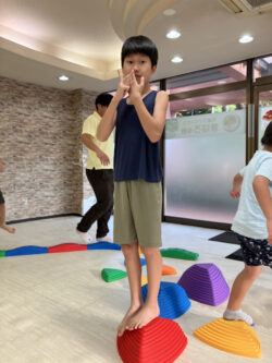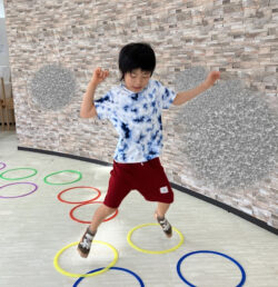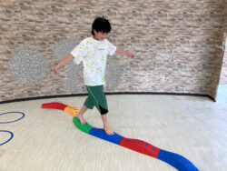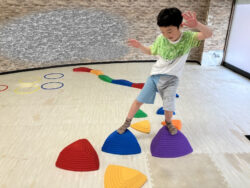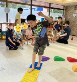 様々な障害物(チャレンジ)を設置して、それを子供たちに乗り越えてもらい体のバランスや柔軟さを養ってもらいます☺