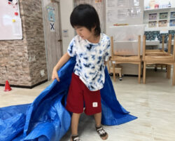 今回は、まずはブルーシートの波間をくぐるチャレンジ、