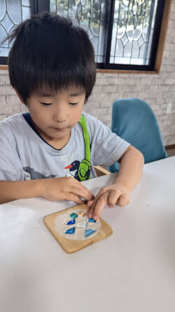 キレイなビーズを使って、コースターに色を付けていきます🎶