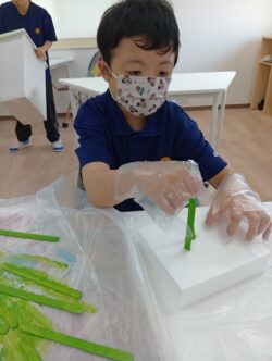 グッズ制作用アイスの棒の色塗りも行いました😁