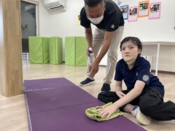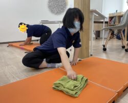 「床磨き&マット拭き」と「草取り」に分かれて作業開始です😊