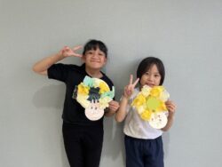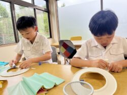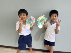 材料は、紙皿、花紙、折り紙、カラーフィルム使いました📖