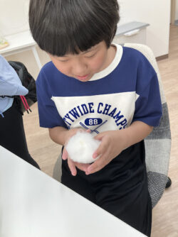 綿毛に絵の具を混ぜてコネコネしていきます🌀